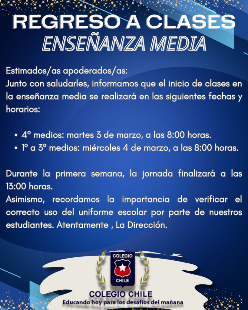 REGRESO A CLASES ENSEÑANZA MEDIA AÑO 2026