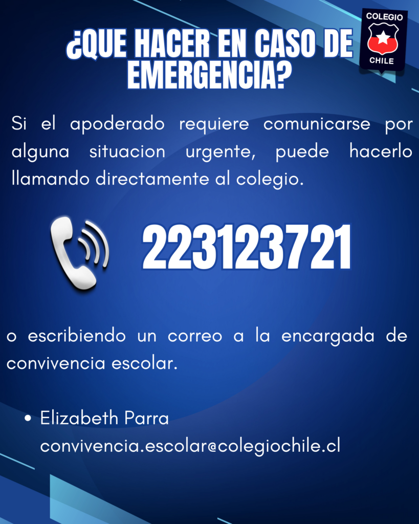 Estimados Padres y Apoderados de Enseñanza Media. Compartimos con ustedes nuestro mail institucional de contacto, para consultas, dudas, solicitudes.