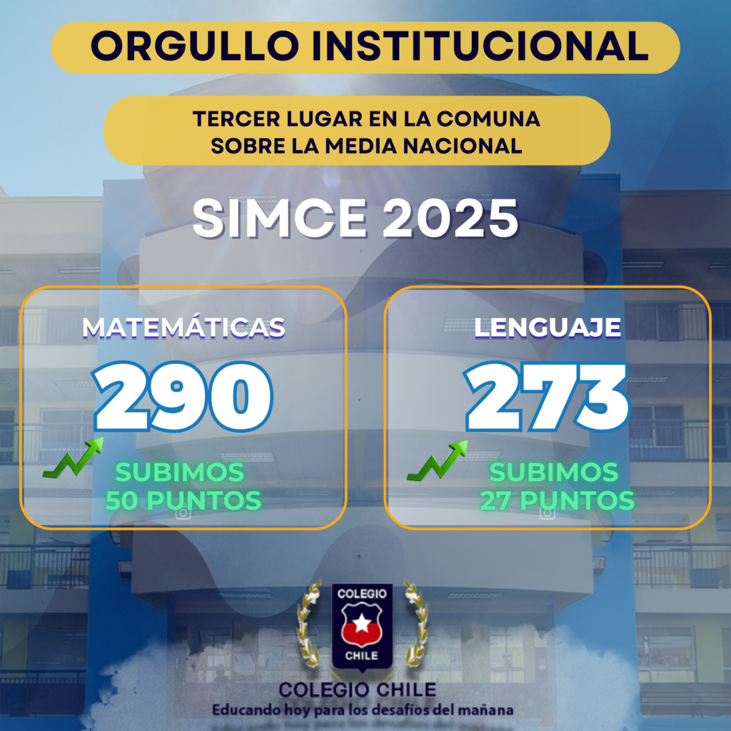 A nuestros queridos estudiantes de la generación 2025 del Colegio Chile Enseñanza Media, quienes como generación lograron mejorar sus resultados en cada una de las pruebas, alcanzando en promedio un 30% más respecto a la medición PAES del año anterior.