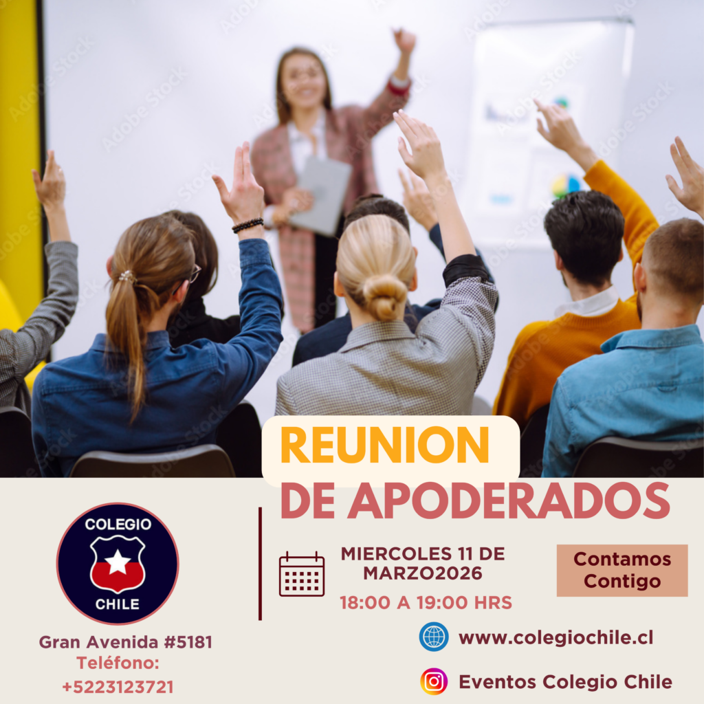 Les queremos recordar que la asistencia a las reuniones de apoderados es de carácter obligatorio y su inasistencia debe ser justificada por medio del profesor jefe del curso. Su presencia es imprescindible para el acompañamiento del proceso formativo de su hijo/a, convirtiéndose en la instancia de unión y trabajo colaborativo con el Colegio, con el fin del desarrollo de mejoras continuas en los aprendizajes, resultados educativos y formación de nuestros estudiantes. Les esperamos La Dirección.